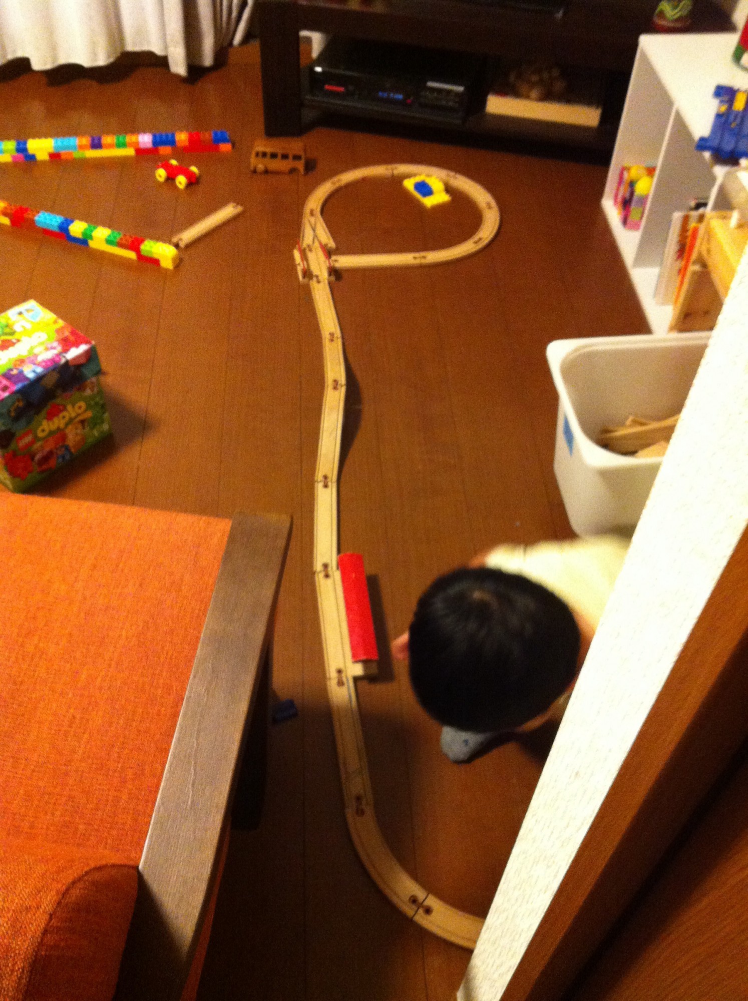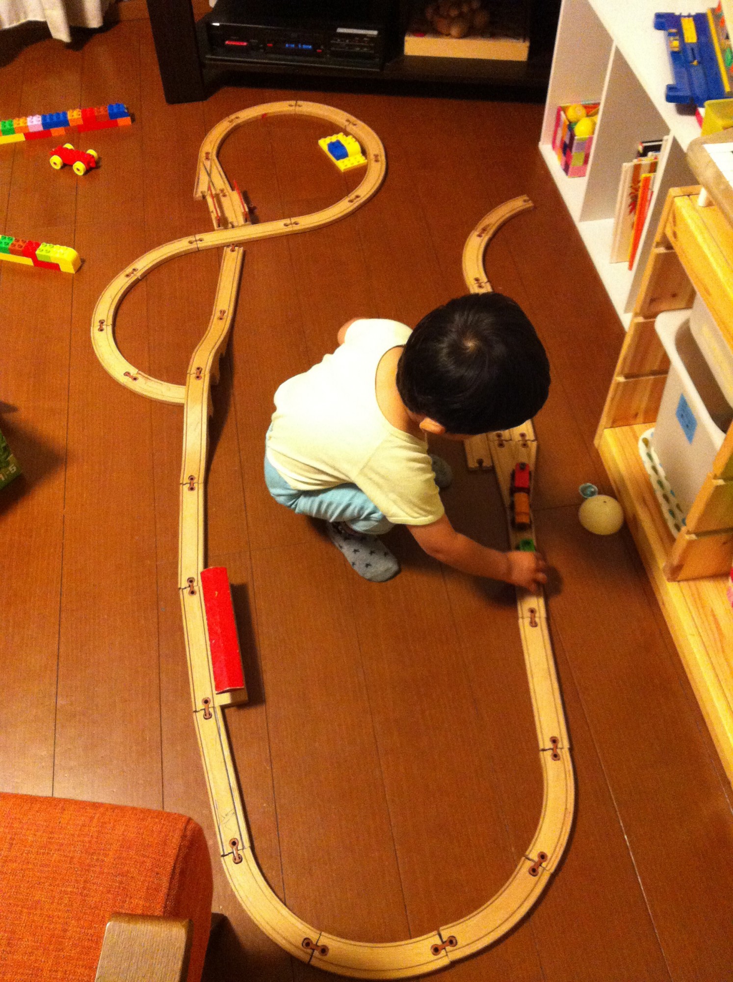 2015年6月16日 線路名人 いつの間にか線路をつなぐのが上達しています。 こんな感じでつなげて、 最終的にはこうなりました。 出発進行! 大人の場合、なんとなく、ちゃんと全部つなげないと、 という気になってしまうんですが、 そんなこと気にせずどんどんつなぎます。 端っこがつながっていなくても気にならないみたいです。 頭の柔らかさに感心。 いかに自分が”あたりまえ”みたいなものに縛られているのか気づかされます。