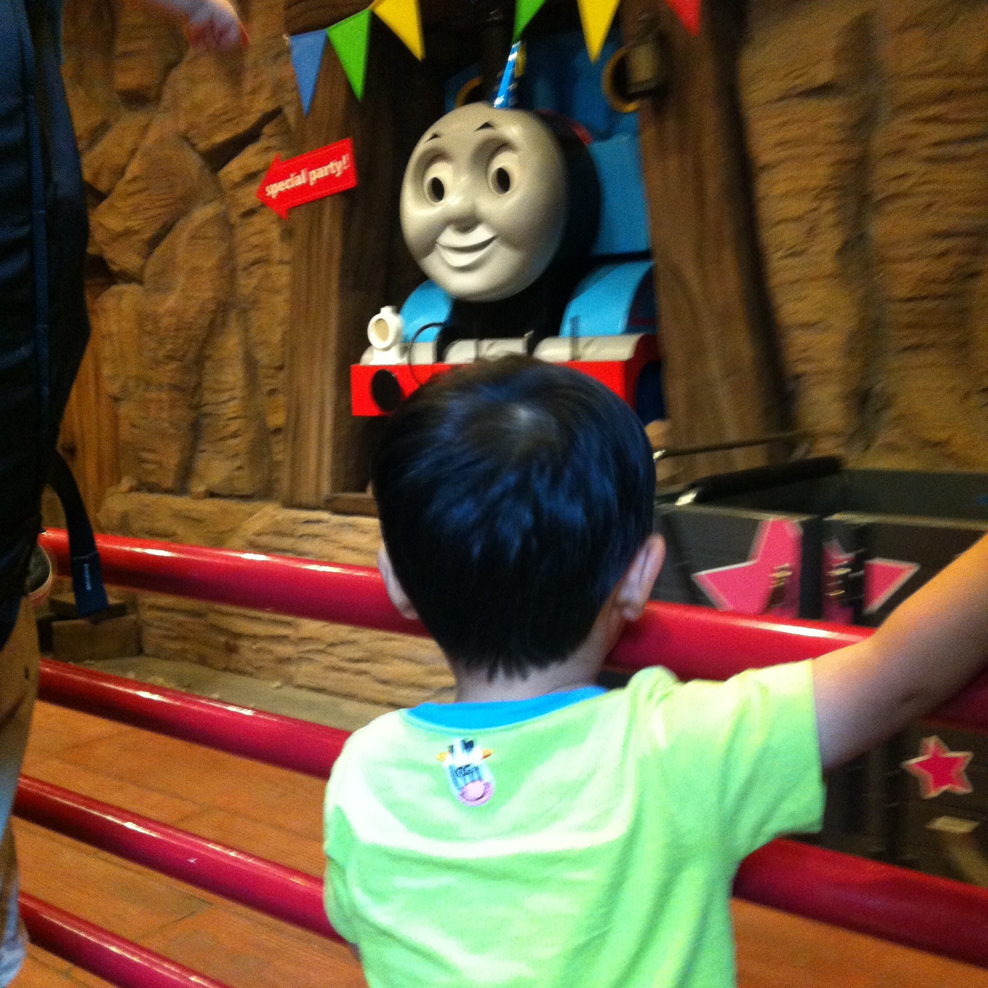 こどもが遊べるようにトーマスの線路と機関車のおもちゃが置いてあったのですが、