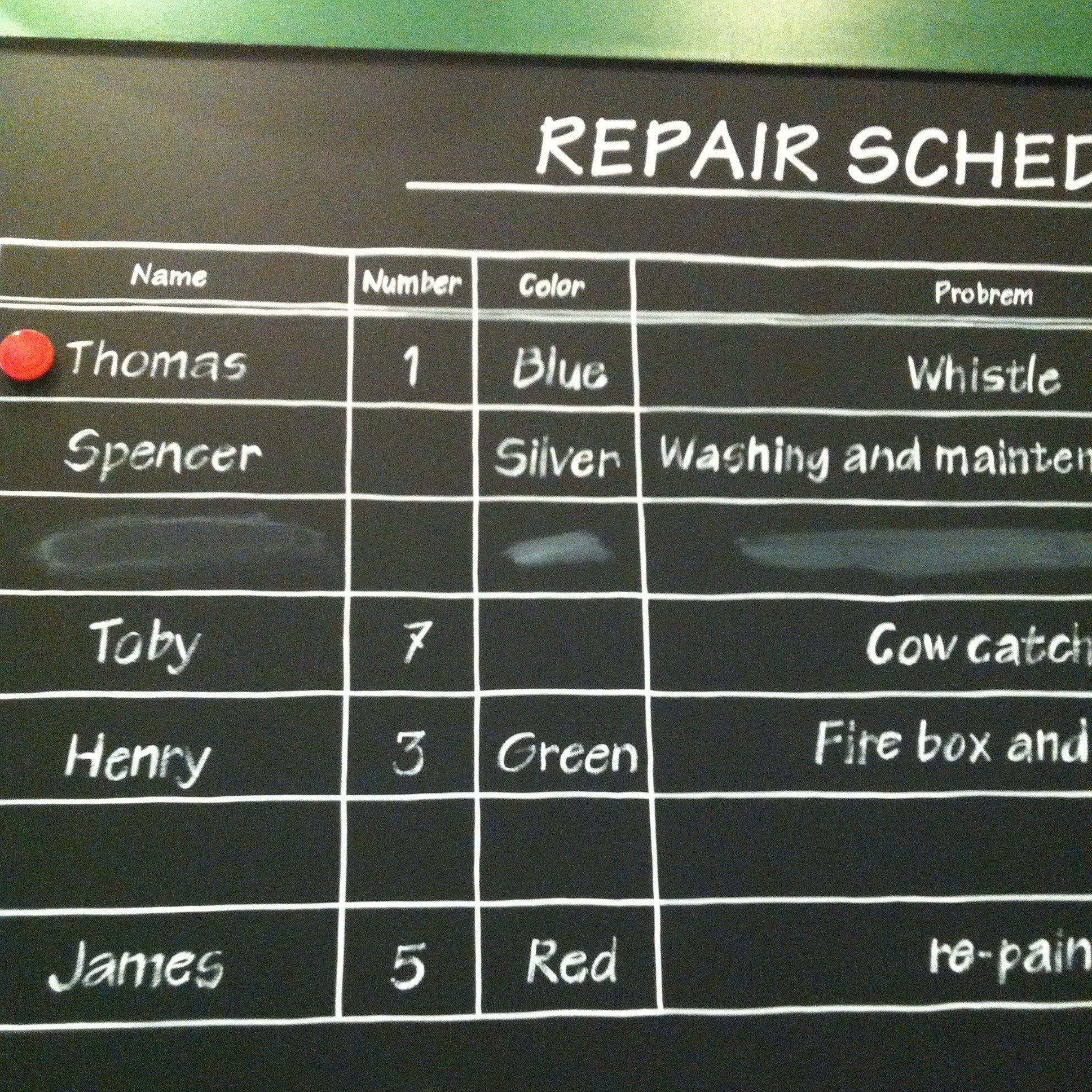 今日の修理スケジュールにトーマスやスペンサーの名前が!