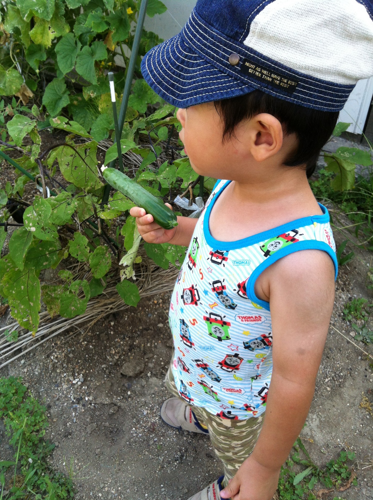 2015年8月15日 なつやすみ 約一週間、息子とふたりで帰省しておりました~。 線路のおもちゃがない実家でも、ブロックで線路をつくったり、 きゅうりを収穫したり、 おばけだぞ~。って遊んだり、 ふだんの生活とはちがい、にぎやかに毎日かわいがってもらいました。 わたしはというと、途中で体調を崩してしまい、最後の最後まで親に心配をかけてしまいました。 息子以上に、甘えさせてもらったなつやすみでした。 さ、また今日から母にもどらないとな!