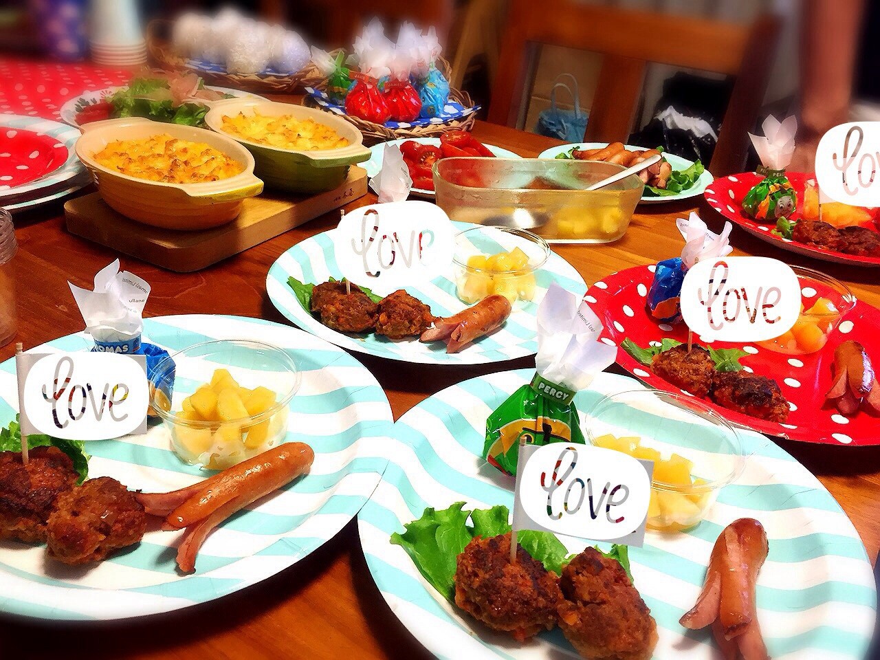 テーマカラーを赤と水色に決めていたので、その色の紙コップと紙皿。