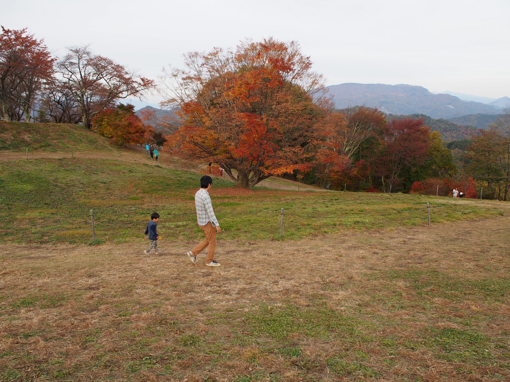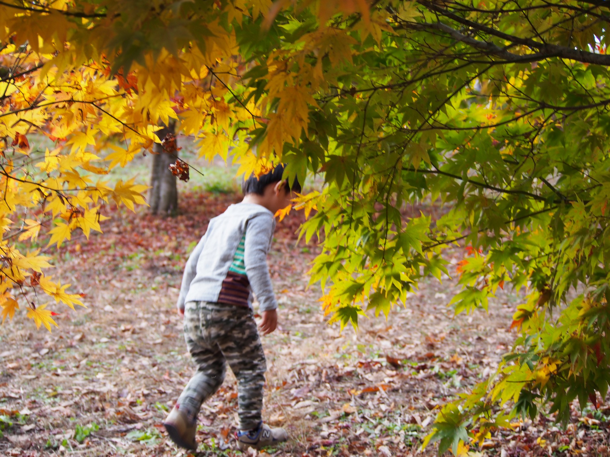 葉が散っていたためか、ずっと車内にいたためか、息子はカエデの木よりも歩き回ることに夢中でした。