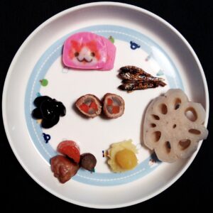 お皿に盛ったり重箱に詰めたりしたかったので、皆より早く起きていたかったのですが、ちょうど遅すぎず早すぎずのいいタイミングで赤ちゃんが起きてくれたので、無事に準備することができました。