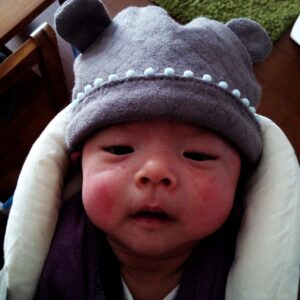 長男のときに作ったくま耳帽子。