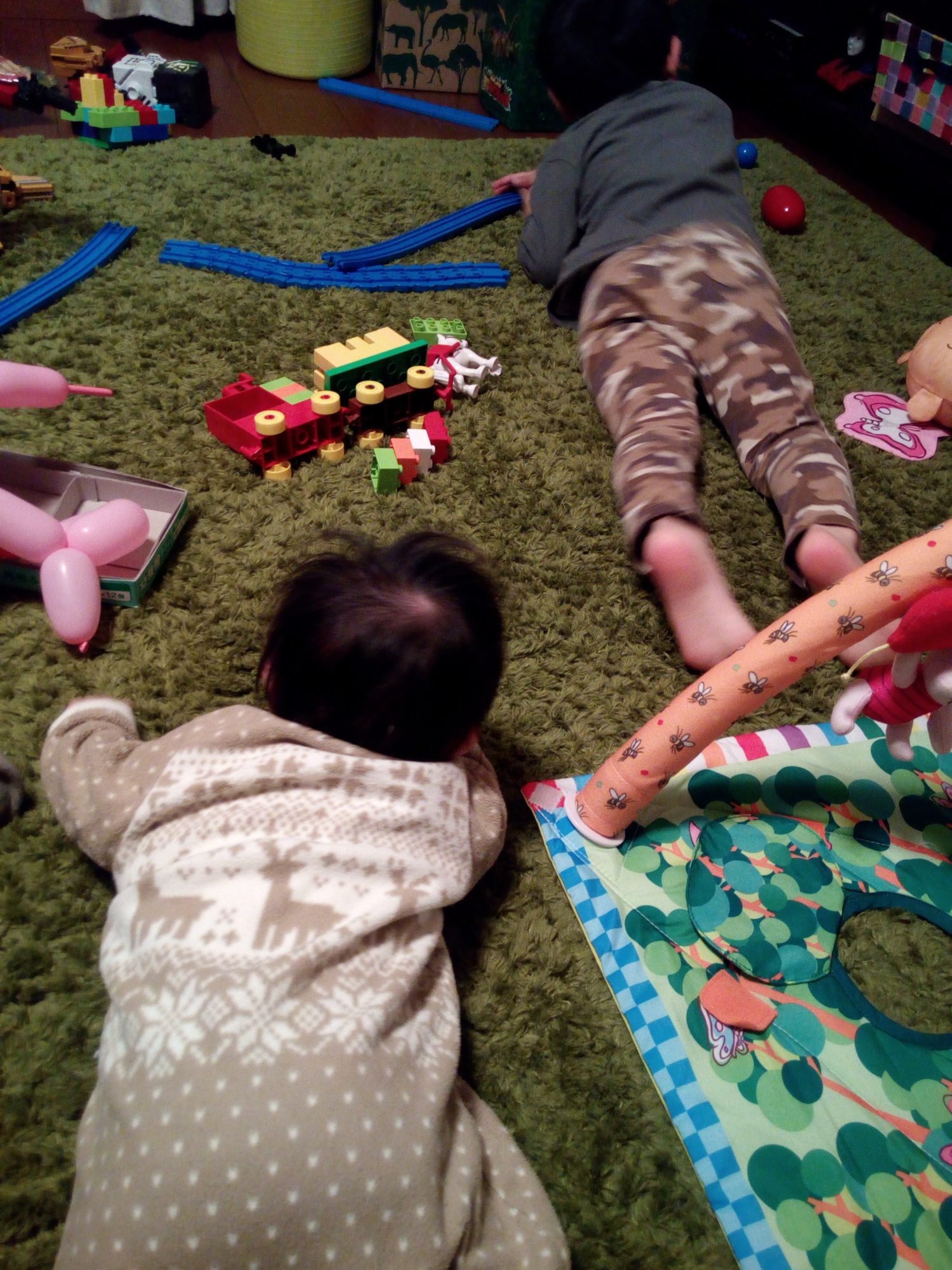 相変わらず癒し系の次男。 寝返った状態からの動きがだいぶ出てきました。 回転がうまくなった! ボールを追っています。 写真ではわか...