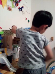 おもちゃをそそくさと避難させる長男。