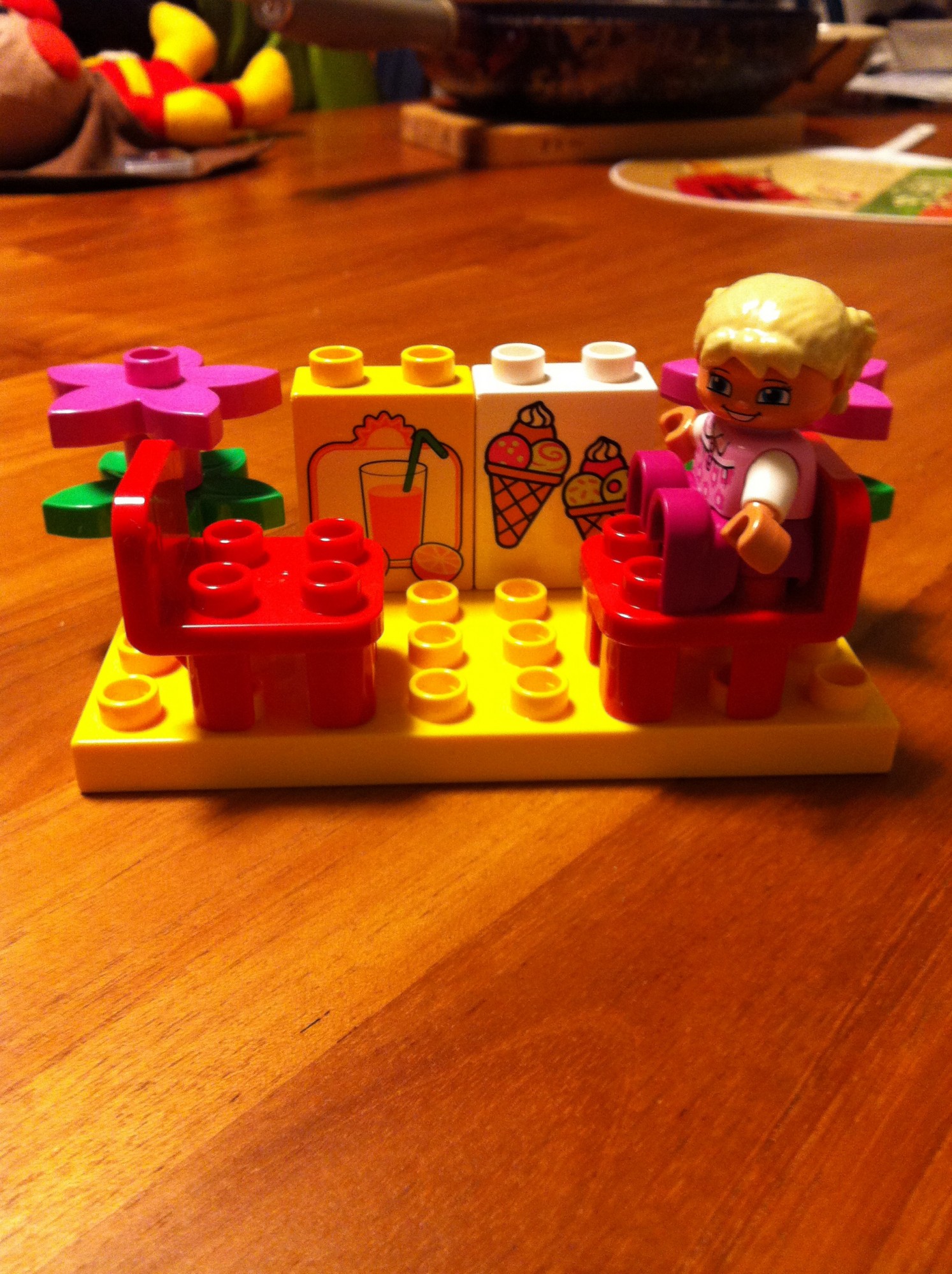 2015年1月26日 ニューレゴ 友人から新しいレゴをいただきました。 このレゴが素敵すぎて。 ソフトクリームやジュースの絵が書いてあるパーツや、 ラジカセの絵が書いてあるパーツがあったり、 こんな傘とカバンもあります。 色合いもなんだかハッピー。 さっそく、人形を車に乗せたり、ソフトクリームを食べさせてあげたり、椅子に座らせたりして遊んでいます。 小さい傘とカバンも気に入って、自分が傘持って歩いたりしてる。 私がこのレゴを気に入りすぎたので、今回の写真は全て私の作品です。 ごめんなさい。