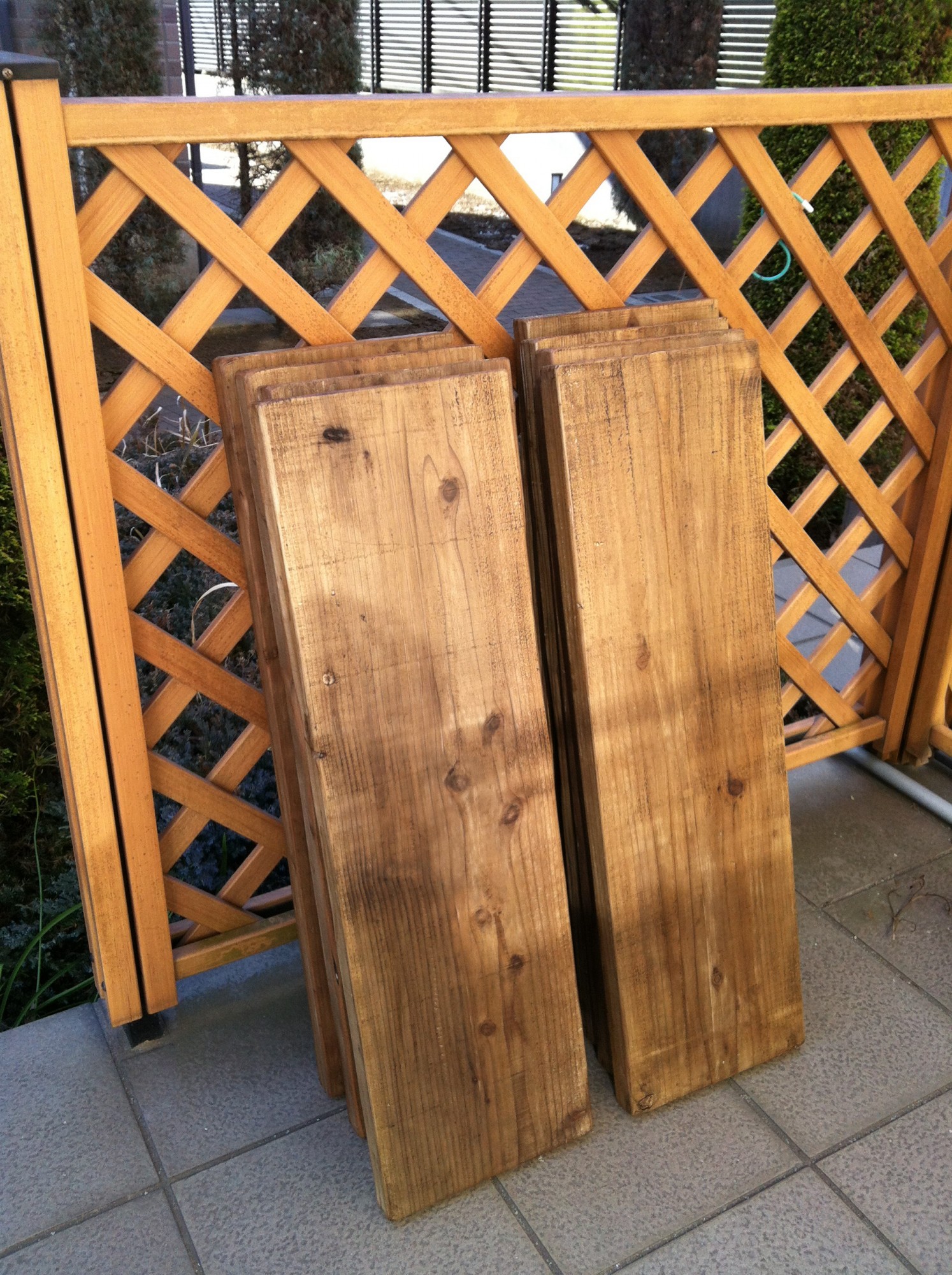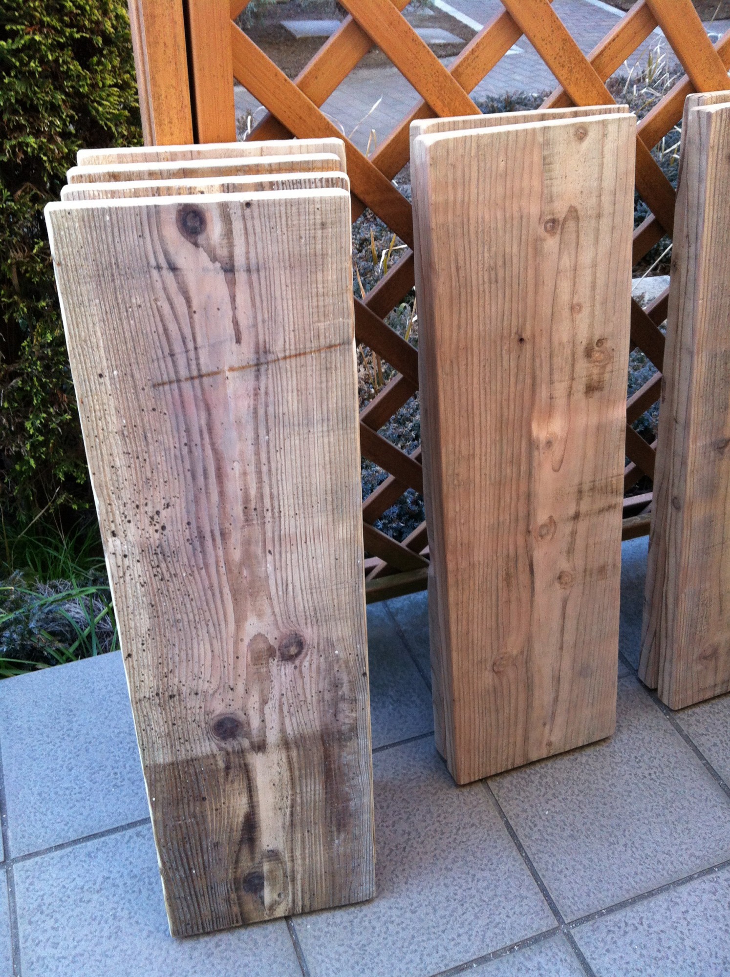 足場板とBRIWAXをネットで注文し、晴れた休日の朝に塗装。