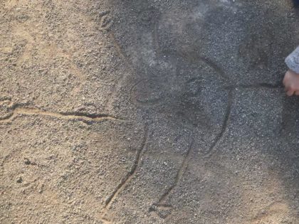 公園で砂にお絵描き。