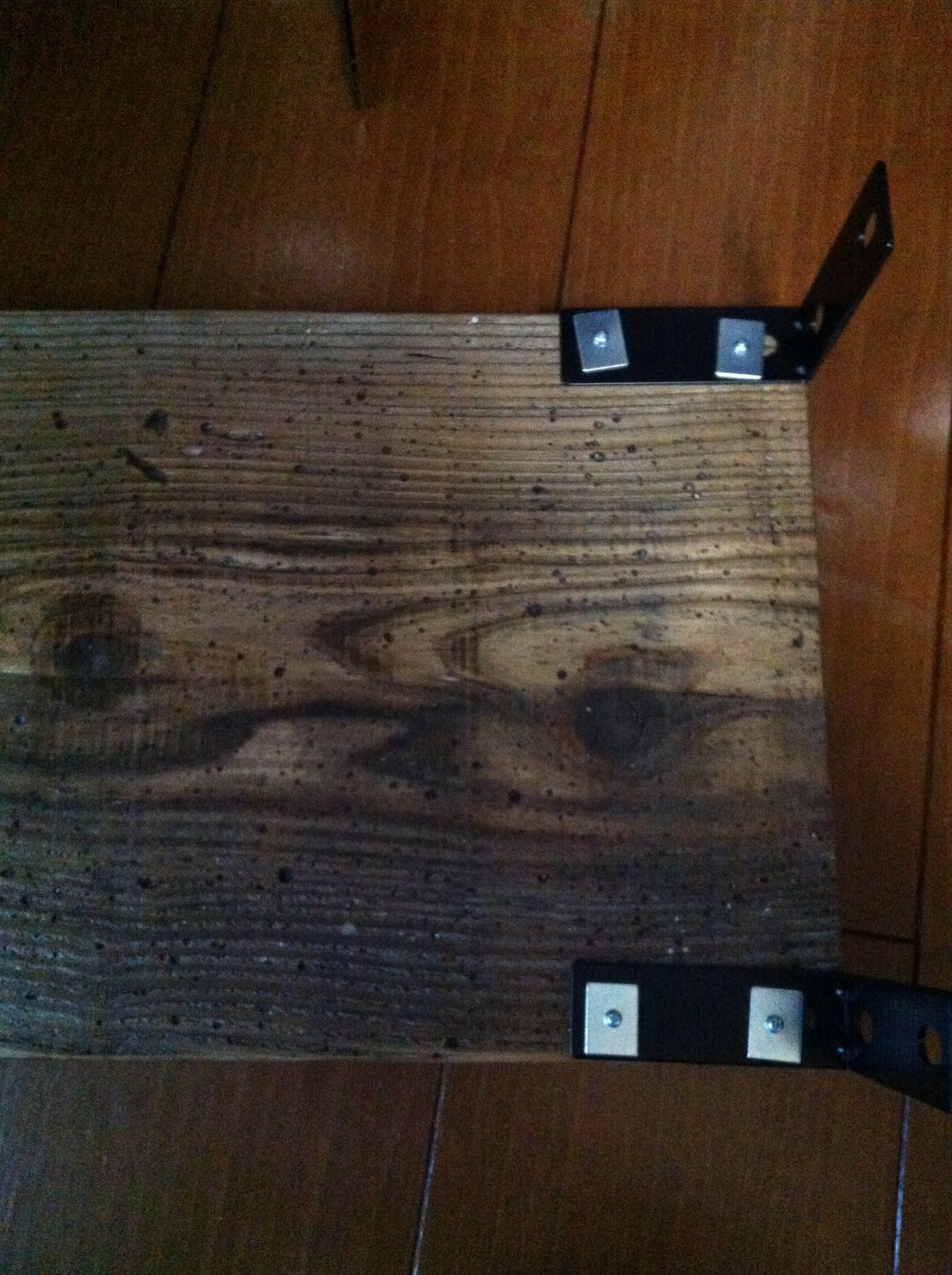 板が古材のためかなり柔らかく、場所によってはネジが泳いでしまってます。。省略しちゃったけど、ほんとはボンド付けた方がよいと思います。