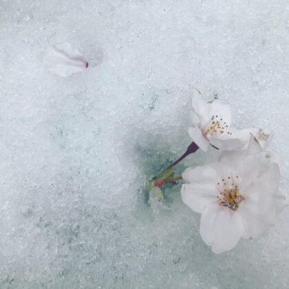 桜の咲く中、雪が降った週末。